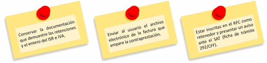 La aplicación del esquema de retención previsto permite que los prestadores de servicios paguen el ISR e IVA a través de las plataformas tecnológicas citadas, mismas que deberán realizar lo siguiente: